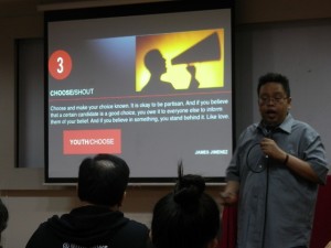 sa iBlog 12, ibinahagi ni Mr. James Jimenez of Commission on Election (Comelec), na mainam ang listen and distill, gayon din ang choose and shout. Ito ay upang mabigayan ng awareness at kamalayan ang ibang botante sa tamang pagboto