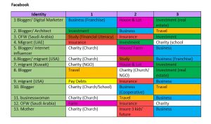 Samantala sa Facebook, 13 ang sumagot sa pa-survey ko. Sa aking kuro, sila ang mga Pilipinong may kamalayan sa iba’t ibang klase ng investments. Iyong iba ay hindi lang basta nagsabi na magnenegosyo o mag-i-invest. Tinukoy mismo kung ano. Ang kanilang “identity” sa table ay base lang sa pagkakilala ko sa kanila sa Facebook.